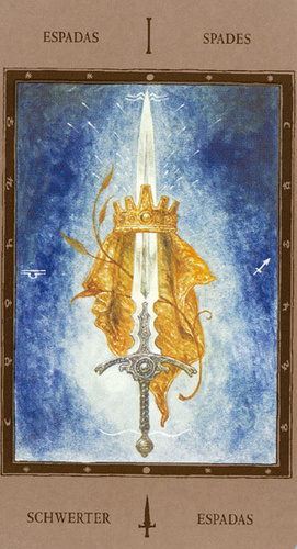 The number 1, associated with this Ace card, is the number of a fresh start with yet more new impulses coming your way. It might be compared to The Fool, the first card of the major arcana.