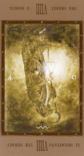 The Hermit carries the number 9. This is the highest base number. After 9 the composed numbers emerge. Therefore the number 9 is the gateway to a higher order. It is also a place to rest before embarking on the next leg of the journey.