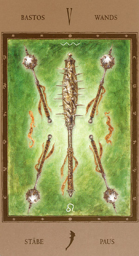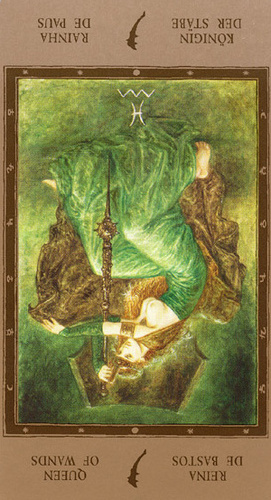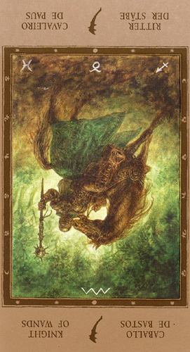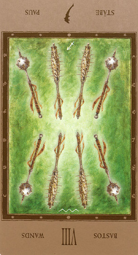 The 10 of Wands is therefore the transition from the element Fire (associated with Wands) to the element Water, associated with Cups. As you might imagine, this not the easiest of transitions.