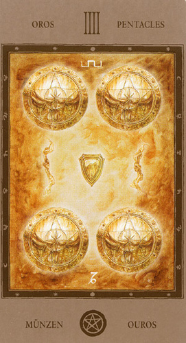 The 4 of Pentacles is about holding on to what you got. The number 4 represents structure and order, and fits well with the suit's element, Earth.