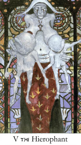 Where The Emperor is the chief of worldly power, The Hierophant is the head of spiritual matters.