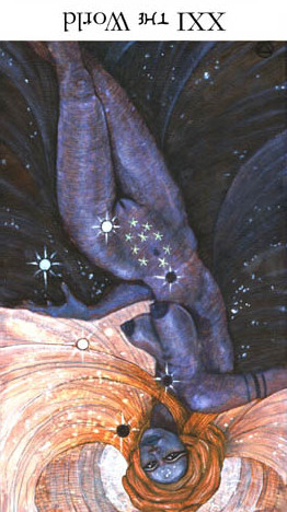 This card falls when you've completed all assignments, overcome all obstacles and are completely at peace with yourself due to your accomplishments. Yet Tarot wouldn't be Tarot if it didn't challenge you to enter entirely new worlds and start the process all over again.