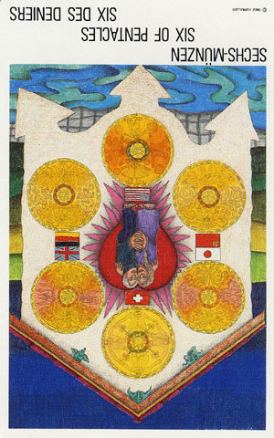 The King of Pentacles uses his Earthly attributes to rule. He goes about his work like an old style business man; he avoids unnecessary risks, aims for real results, and acts from confidence.
