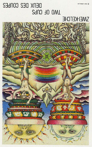 This the first assignment number of the Cups suit. Unlike Wands, with the Fire element, Cups, with the water element, has a lot more patience. Water is by nature more introspective, and this second card in the Cups suit is indeed about exploring yourself. The outcome is uncertain as always, but it usually results in better acceptance of yourself.