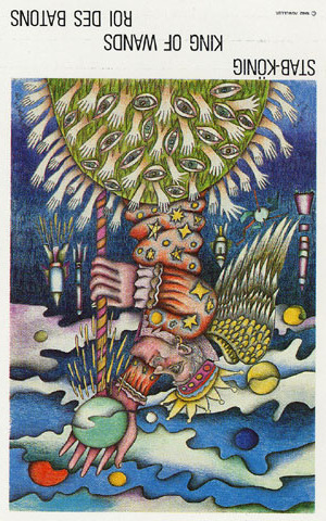 The King of Wands uses the properties of Wands (vitality, optimism, enthousiasm) to go out with confidence. He is seen as a leader with charisma.