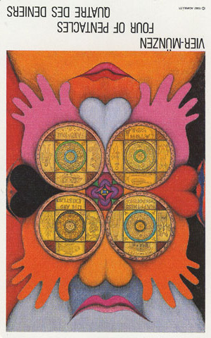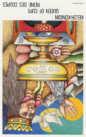 With the 4, the second cycle of this suit is commenced, where a choice between structure and feeling has to be made, where old securities have to be let go of to work towards a new future. But like Wands, Cups don't like structure much, they prefer to be free and dream rather than to make commitments and go for something.