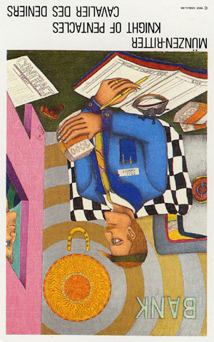 The Knight of Pentacles doesn't like to get worked up about anything. He prefers to make quiet steady progress by sticking to a persevering attitude, while not allowing himself to become exhausted or stressed.