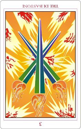 This card is about exposing your new ideas to the world. The Wand's element fire goes well with the number 3, as 3 is an output number, a number of results. Fire likes getting to results quickly.