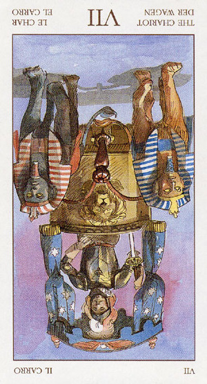 During the prevous card, The Lovers, all the wisdom of the first cards in the deck has been processed and a choice was made for personal growth. Now it's time to do something with all this baggage, to actually travel the road. A lot has been done so far, wisdoms have been accumulated and integrated into one's personality.