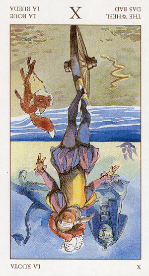 With the Wheel of Fortune, the second major cycle of Tarot commences. The first cycle in the first cards of the deck was about development as a child, accumulating wisdoms and integrating them into your personality. This second cycle is about your development as an adult. It is a more demanding cycle. You'll have to see if you can face what the world throws at you.