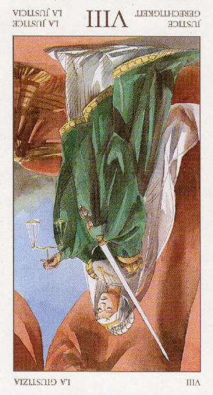 If a card is upside down, that is the common notation for the opposite meaning of the card, also known as the "negative" or "reversed" meaning of the card.