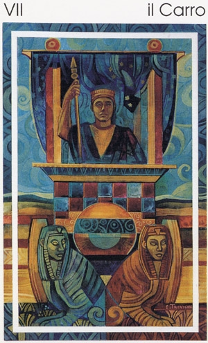 During the prevous card, The Lovers, all the wisdom of the first cards in the deck has been processed and a choice was made for personal growth. Now it's time to do something with all this baggage, to actually travel the road. A lot has been done so far, wisdoms have been accumulated and integrated into one's personality.