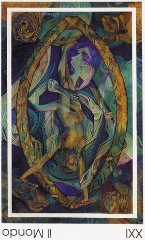 The World carries the number 21. As a composed number that is 3. The World is the third 3 in the Major Arcana. 3 is a reward number, so the third 3 must be even more powerful.