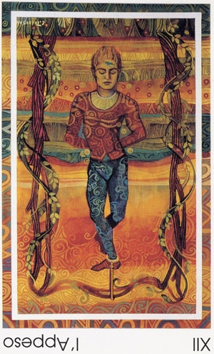 First you learned that you're not a plaything of fate, that you can make your own choices. Then you've learned how to fend for yourself and face yourself. Now, at The Hanged Man, you can learn to let go. You no longer have to cling to old values. You've found strength in yourself and by letting go, you allow growth.