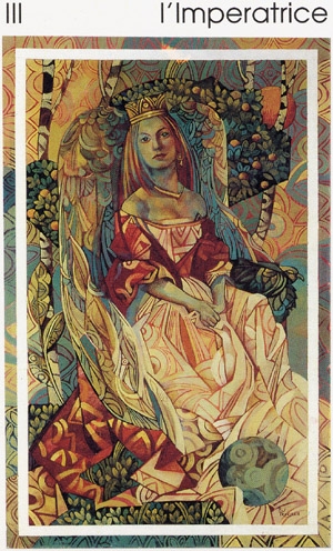 The Empress carries the number 3. This is the number of birth, of plenty, of harvest, of summer, of the first results. The number 3 stands for joy and fun, for creativity and fantasy, for warmth and humor.