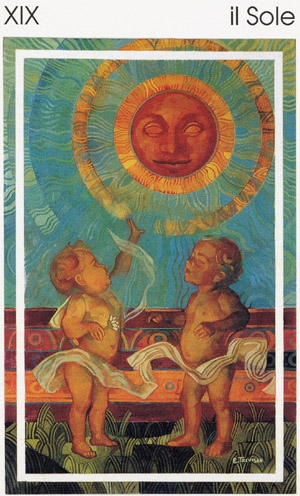 The Sun carries the number 19, a composed value of 1. This is the third composed 1 in the Major Arcana. It's the culmination of the 1's. The third 1 is a reward and a beginning at the same time. It also represents creative energy.