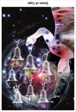 The 7 of Cups is about making a choice between different ideals. But Cups, with the water element, don't like making definitive choices that much, making this 7 in this suit a bit of a hard choice.