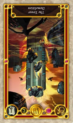 The card of The Tower goes by different names in different Tarot games. Some call it The Tower of Destruction, or The House of God, or Tower of the Light.