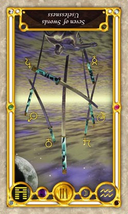 The 7 of Swords is about making slow progress because you can't trust the situation and/or people around you.