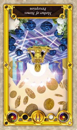 The Queen in the suit of Pentacles becomes aware of her Earthly attributes; she's reliable and sober, able to give good advice.