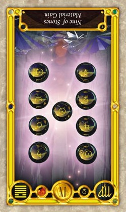 The 9 of Pentacles represents earned rest. The element Earth, attached to the Pentacles suit, appreciates the rest that completion of hard work brings. This is a good time for games and relaxation.