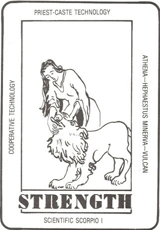 Strength is the second of the four midieval values. Justice, card 11, is the first, and the third, Temperance, is card 14.