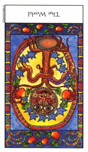 This card falls when you've completed all assignments, overcome all obstacles and are completely at peace with yourself due to your accomplishments. Yet Tarot wouldn't be Tarot if it didn't challenge you to enter entirely new worlds and start the process all over again.