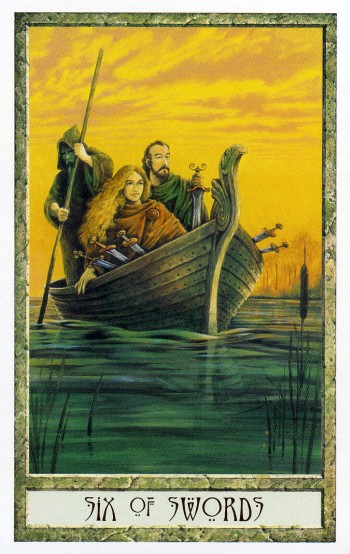 The 6 of Swords is a reward number after the hard assignment in 5 of Swords, it brings you to a safe place to rest a bit.