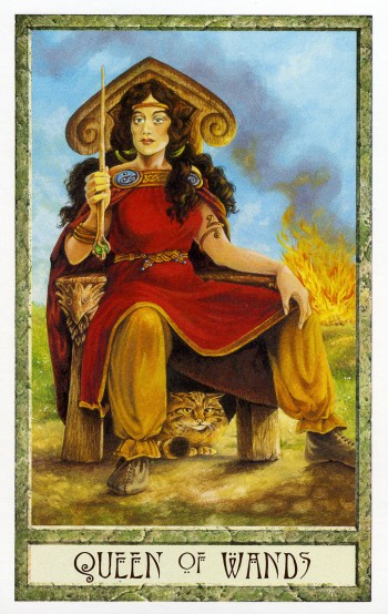 The Queen of Wands is drawn when you (have to) become more aware of the properties of the Wands suit; vitality, optimism and enthousiasm.