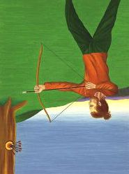 First you learned that you're not a plaything of fate, that you can make your own choices. Then you've learned how to fend for yourself and face yourself. Now, at The Hanged Man, you can learn to let go. You no longer have to cling to old values. You've found strength in yourself and by letting go, you allow growth.