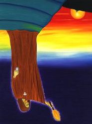 The Hermit shuts out the world and retreats into solitude to better understand some spiritual aspect of life. He opens to the cosmos and lets it's wisdom sink in. Hermits are often seen as wise old men who can guide a traveller along a journey.