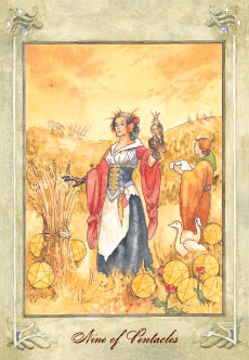 The 9 of Pentacles represents earned rest. The element Earth, attached to the Pentacles suit, appreciates the rest that completion of hard work brings. This is a good time for games and relaxation.