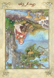 With the 4, the second cycle of this suit is commenced, where a choice between structure and feeling has to be made, where old securities have to be let go of to work towards a new future. But like Wands, Cups don't like structure much, they prefer to be free and dream rather than to make commitments and go for something.