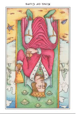 The King of Cups uses his intuition to achieve his ideals. Since Cups are turned inward, and Kings turned to the outside world, this card might be a difficult one, or it could be a powerful one.