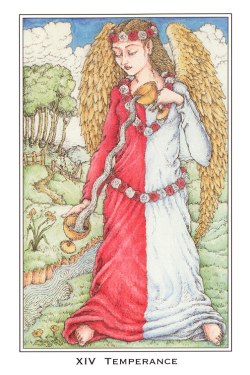 With Death, an important decision made with The Hanged Man was given shape by letting go of the old. Now you're in a transitionary period and this Temperance card is a place of rest during the journey through the underworld.