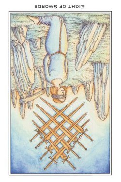 The 8 of Swords is about slowly regaining strength and energy. The 8 is an assignment number, and in the element of Swords it's a bit harder than usual.