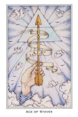 The ace of wands represents the beginning of an idea. The element fire and the number 1 give a powerful combination: enterprise and new beginnings apply to both. This is an energetic combination, which is why the card is generally considered a positive one. Spring is the season associated with this card.