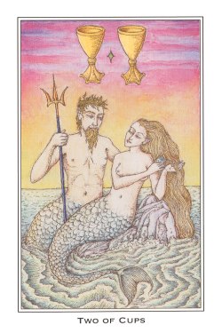 This the first assignment number of the Cups suit. Unlike Wands, with the Fire element, Cups, with the water element, has a lot more patience. Water is by nature more introspective, and this second card in the Cups suit is indeed about exploring yourself. The outcome is uncertain as always, but it usually results in better acceptance of yourself.