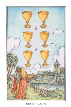 The 6 of Cups is about having confidence in something. It is the number of security and harmony. In the suit of Cups this means to be in harmony with yourself.