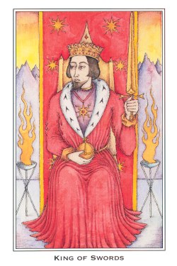 The King of Swords rules with diplomacy and a strong sense of responsibility, not just for himself but also for those around him, yet he is not afraid to make heavy decisions that compel him to eliminate dangers and dangerous opponents with some force.