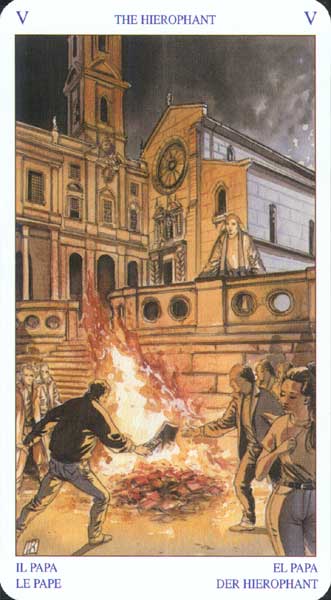 Where The Emperor is the chief of worldly power, The Hierophant is the head of spiritual matters.