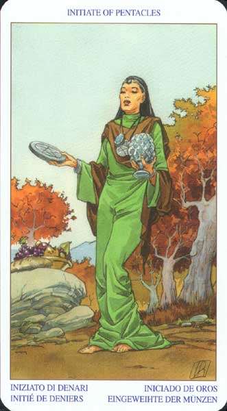 The Queen in the suit of Pentacles becomes aware of her Earthly attributes; she's reliable and sober, able to give good advice.