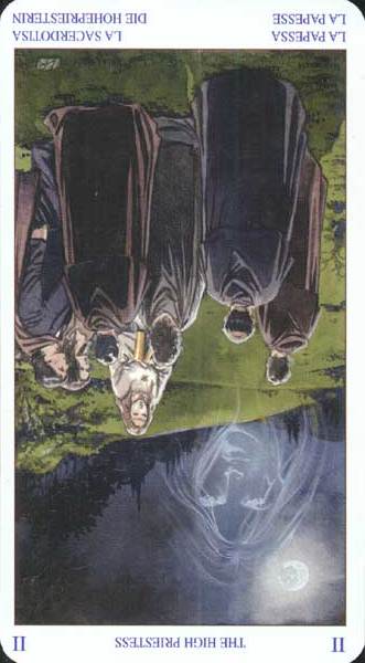 The Hermit, also a 9, closed off the upperworld. The Moon closes the underworld.