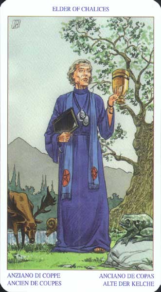 The King of Cups uses his intuition to achieve his ideals. Since Cups are turned inward, and Kings turned to the outside world, this card might be a difficult one, or it could be a powerful one.
