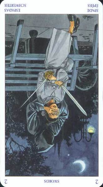 The 2 is an assignment number in tarot, and in this case of the 2 of Swords, it's about being forced to wait for something, often even while blindfolded in some sense.