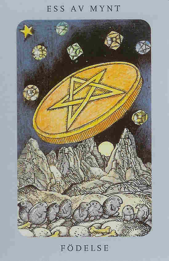 When this card falls, it might serve to point your attention to whatever is new and fresh in your life; a new job, study, love relation, business relation, project, etc. Look to the other cards in the reading to see what more can be said about it.