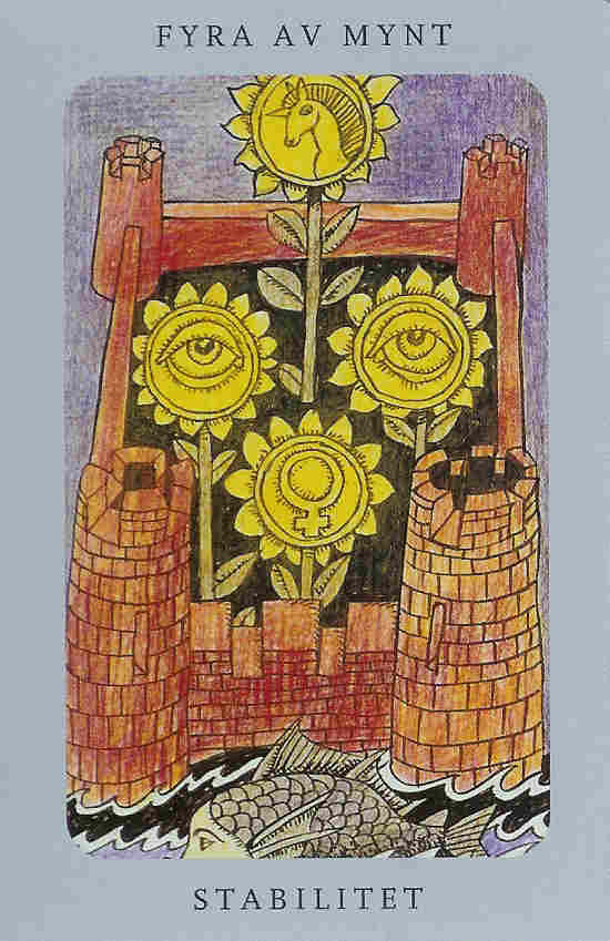 The 4 of Pentacles is about holding on to what you got. The number 4 represents structure and order, and fits well with the suit's element, Earth.