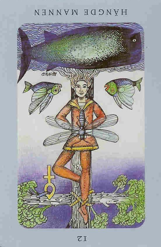 First you learned that you're not a plaything of fate, that you can make your own choices. Then you've learned how to fend for yourself and face yourself. Now, at The Hanged Man, you can learn to let go. You no longer have to cling to old values. You've found strength in yourself and by letting go, you allow growth.