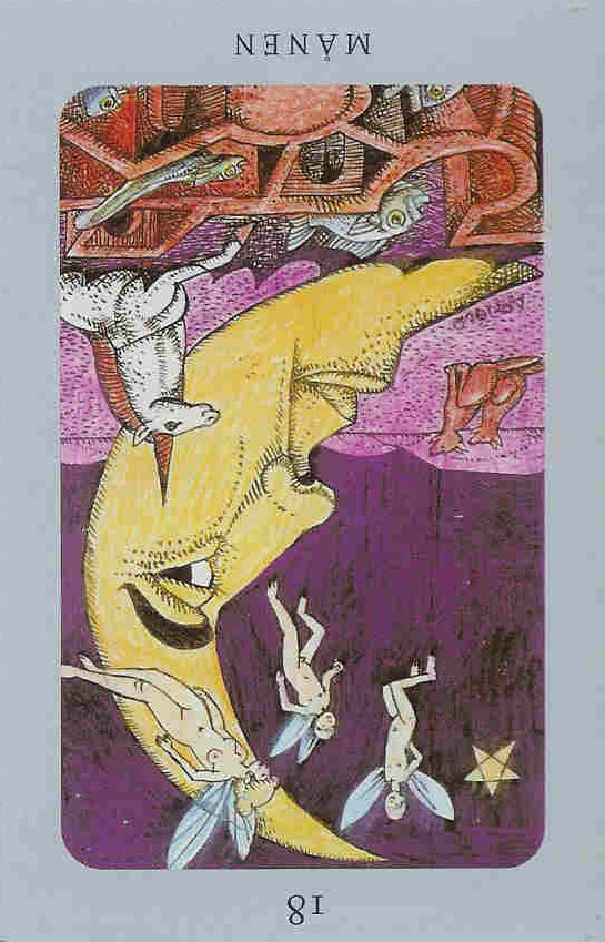 The Hermit, also a 9, closed off the upperworld. The Moon closes the underworld.