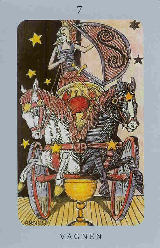 During the prevous card, The Lovers, all the wisdom of the first cards in the deck has been processed and a choice was made for personal growth. Now it's time to do something with all this baggage, to actually travel the road. A lot has been done so far, wisdoms have been accumulated and integrated into one's personality.